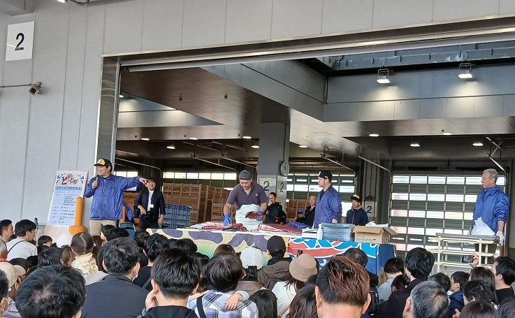 ステージでは地元学生による吹奏楽演奏とダンス発表をはじめ、マグロ解体ショーや模擬セリなど魚市場ならではのイベントが行われ、会場は活気に満ちていました。